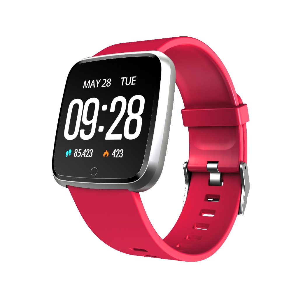 1.3 Inch Color Screen Exercise Heart Rate Blood Pressure Sleep Detection Call Alert Smart Bracelet Red silicone strap