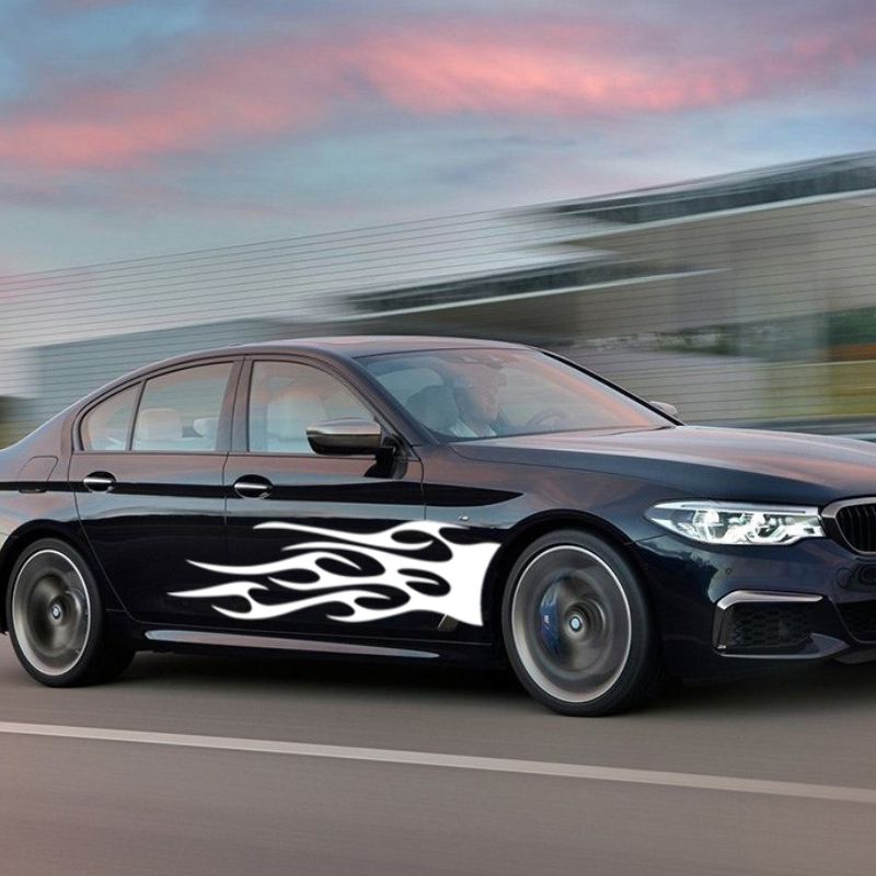 1 Pair Car Truck Totem Flame Graphics Label Side Vinyl Body Sticker Cool Waterproof Auto Sticker white