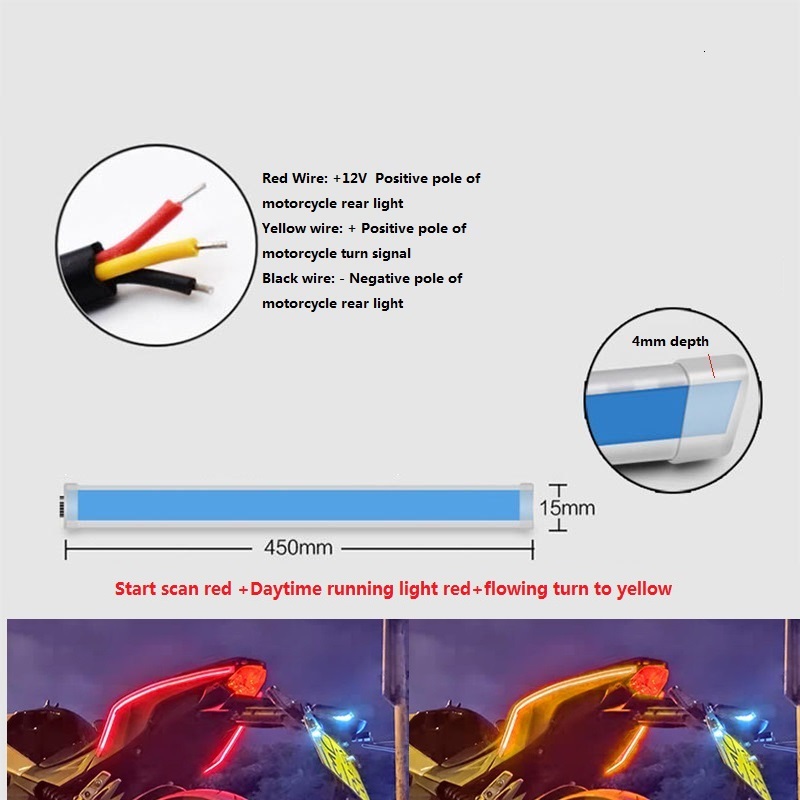 1 Pair Motorcycle Strip Light LED Daytime Running Light Sequential Flow Duotone Red light + streamer yellow_45cm