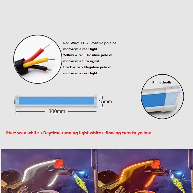 1 Pair Motorcycle Strip Light LED Daytime Running Light Sequential Flow Duotone White light + streamer yellow_30cm