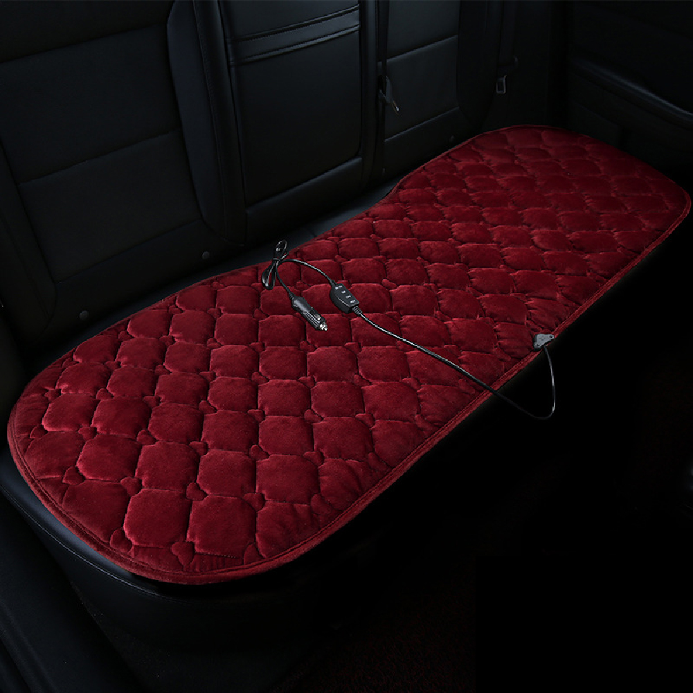 12V Heating Car Seat Cover Front Seat Cushion Plush Heater Winter Warmer Control Electric Heating Protector Pad Love Wine Red-Back Row