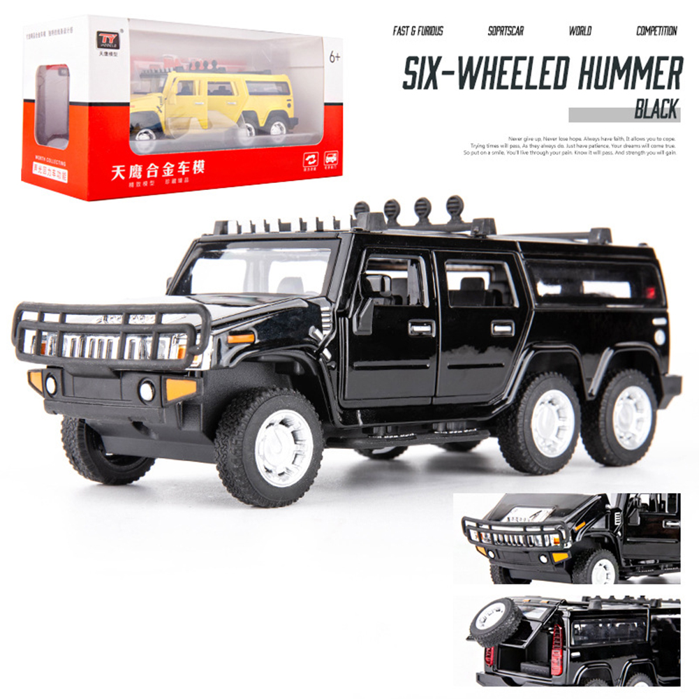 1:32 Car Model for Hummer H2 Off-road High Simulation Alloy Car Model Sound And Light Pull Back Door Boy Car Toy For Children Gifts black