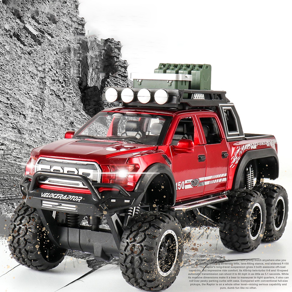 1:32 Simulated Raptor F150 Acousto-Optic Resilient Alloy Model Car Children Toy for Ornament red