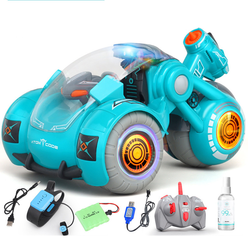2.4G RC Stunt Car Dual Remote Control Gesture Sensing Spray Drift Car Model Toy for Kids blue