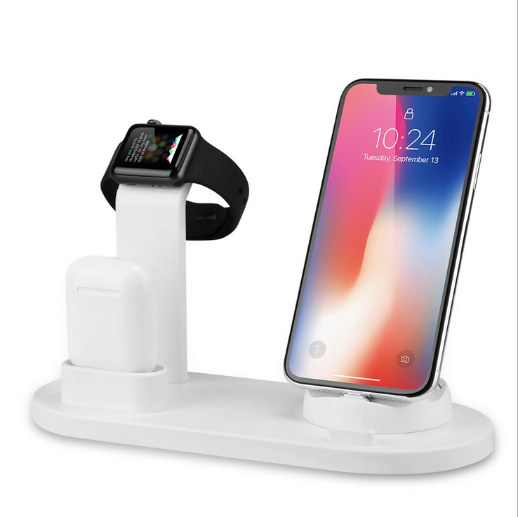 3 in 1 Charging Dock Holder for iPhone Samsung Charging Stand Station for Apple Watch Airpods white