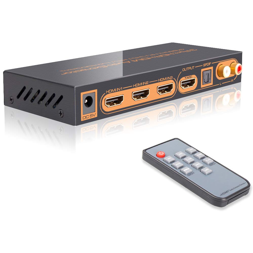 A True 4K HDMI Audio Extractor: Add 3 more HDMI 2.0 ports to your UHD TV/monitor/projector, meanwhile extract/split audio from HDMI IN, output it via optical SPDIF or RCA L/R to external stereo/surround sound system.Suitable for speakers/amplifiers/sound