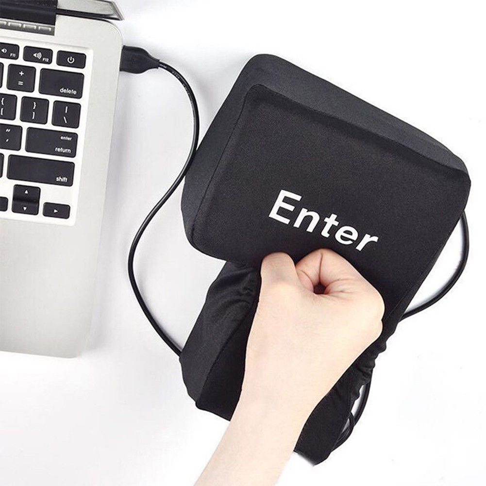 Big Enter Anti Stress Relief Button USB Nap Pillow Squeeze Key Funny Decoration black