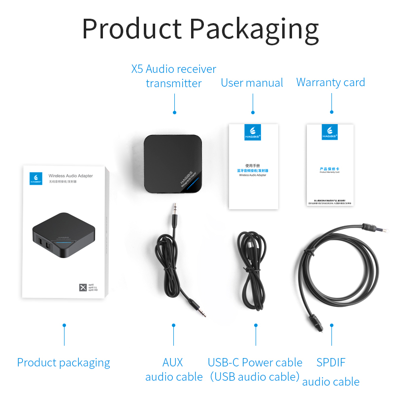 Features the highest version Bluetooth V5.0 and the high-end CSR8675 chip to provide the best transmission efficiency, stability and ultra-low power consumption. Support AptX HD and AptX Low Latency, boasting high fidelity CD quality stereo sound streams