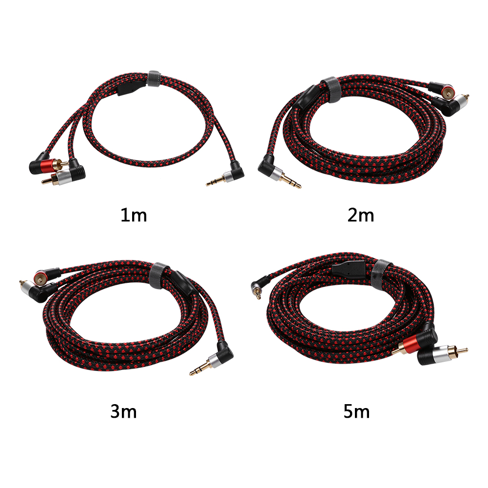 Braided 90degree 3.5mm jack to 2RCA Audio Cable Wrapped Shielded For Speakers Amplifier Mixer