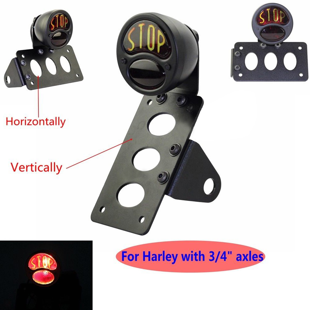 Bright “Stop” Side Mount Tail Light+License Plate Bracket For H-D Chopper Bobber Glass STOP large bracket