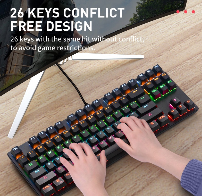 Computer Keyboard Colorful 87-key Gaming Keyboard Office Mechanical Keyboard black