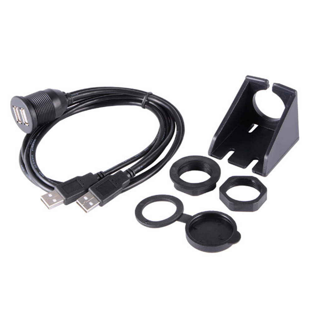 Dual USB Socket Extension Cable Car Dashboard Flush Mount 2 USB Plug Lead Panel Data Cord Motorcycle Wire Charger black