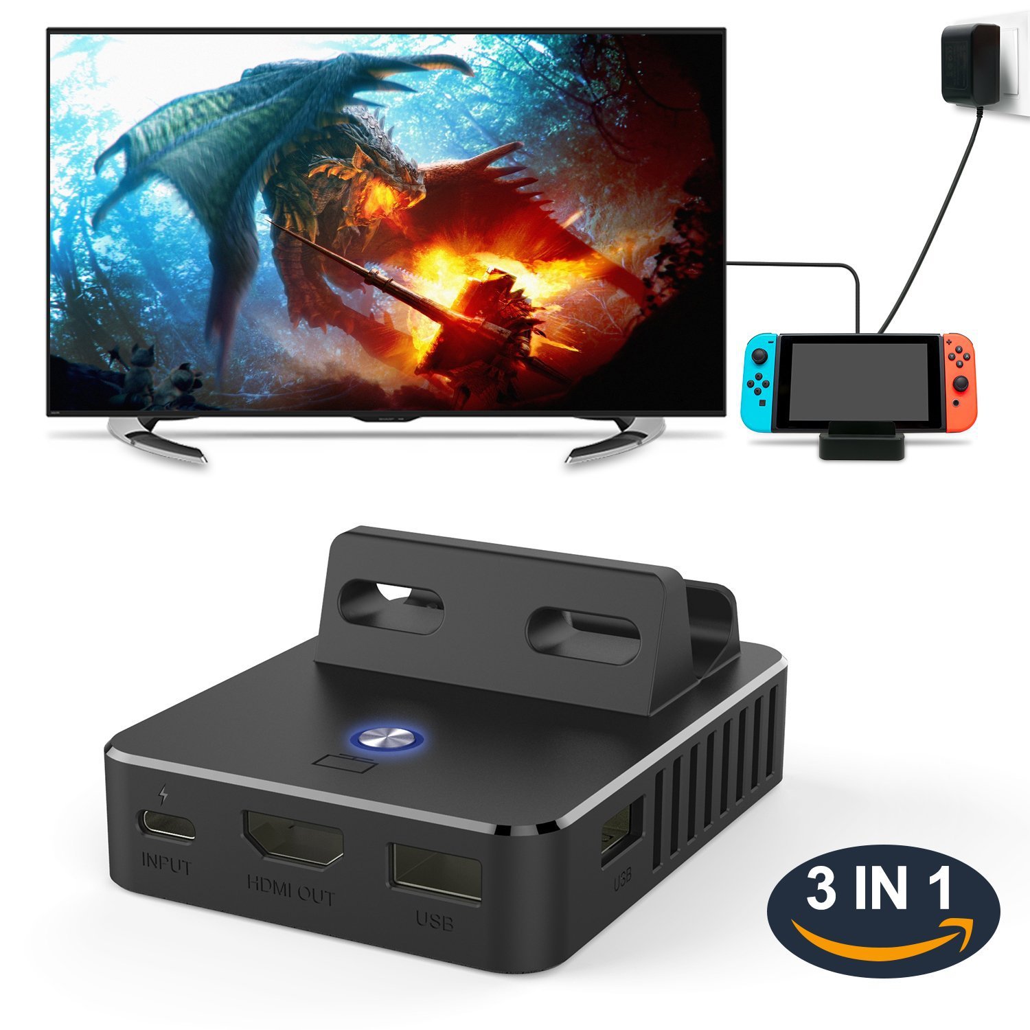For Nintend Switch Dock Base TV Type C Output Charging Stand Switch Cooling Portable Bracket One-button Display Adapter black