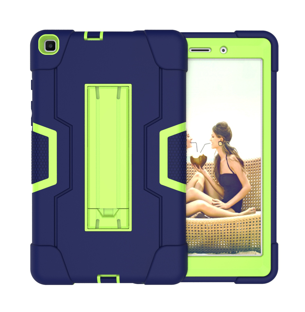 For Samsung Tab A T290 T295 PC+ Silicone Hit Color Armor Case Tri-proof Shockproof Dustproof Anti-fall Protective Tablet Cover Navy blue + yellow green