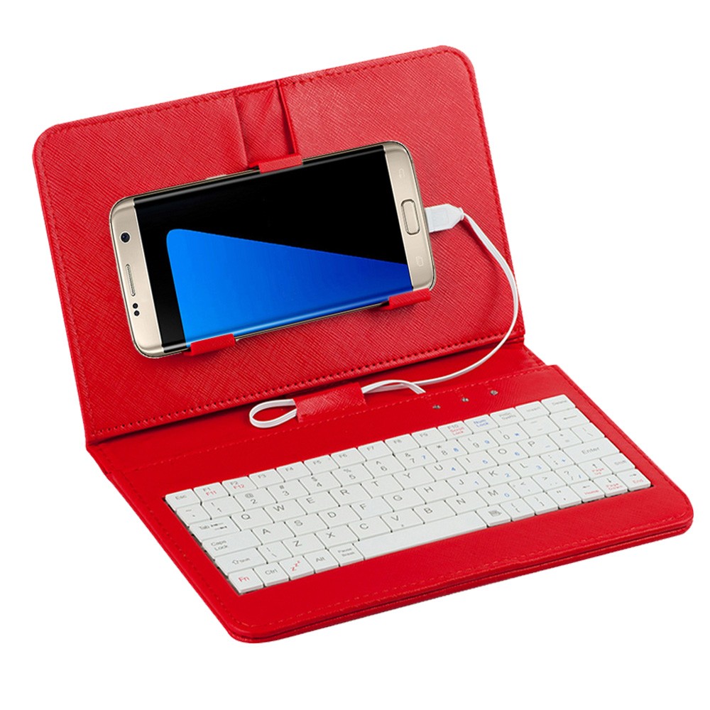 General Wired Keyboard Flip Holster Case for Andriod Mobile Phone 4.8-6.0″ red