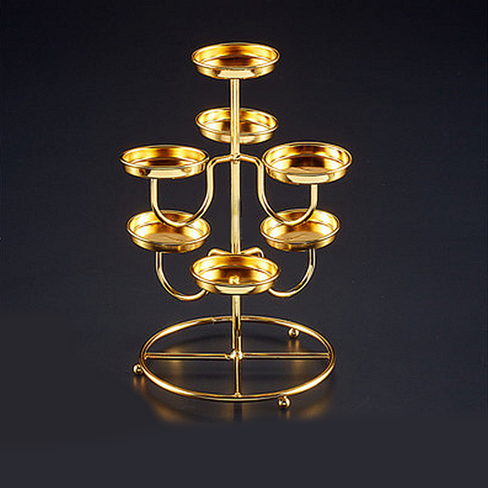 Made of metal material, with electroplating process.3 layers and 7 candles holder design.Home Candelabra for the Buddha.
