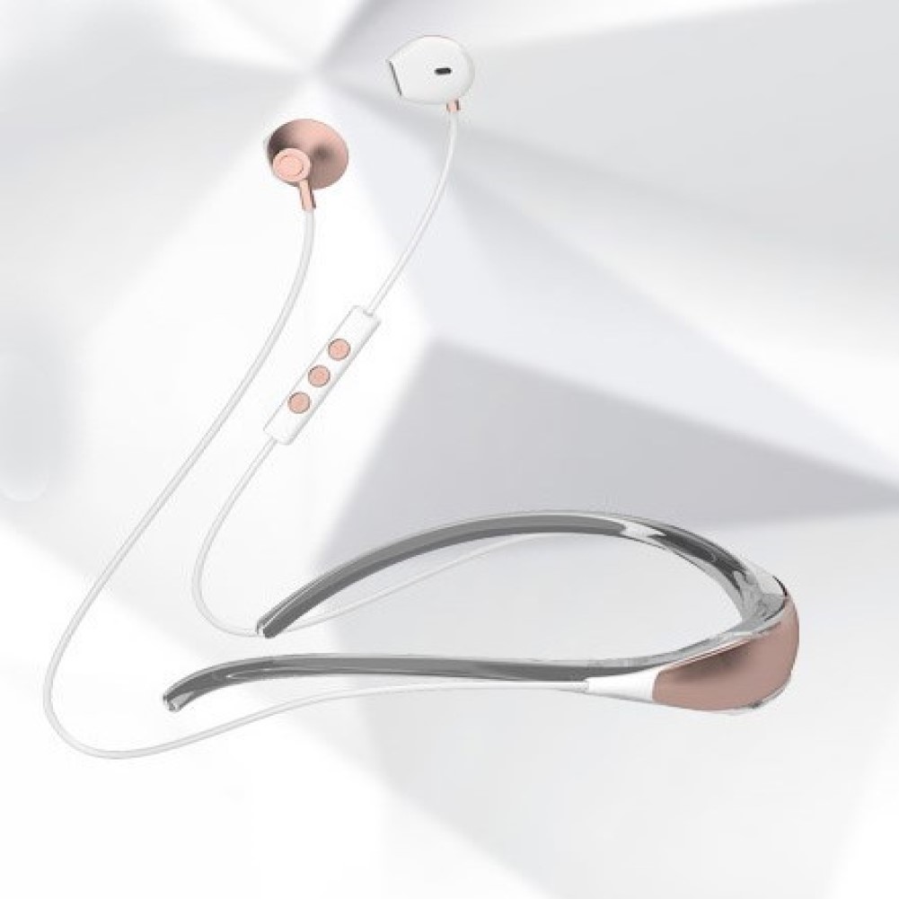 Hanging Neck Bluetooth Earphone X19C Wireless Sports Headphone Earbuds White champagne