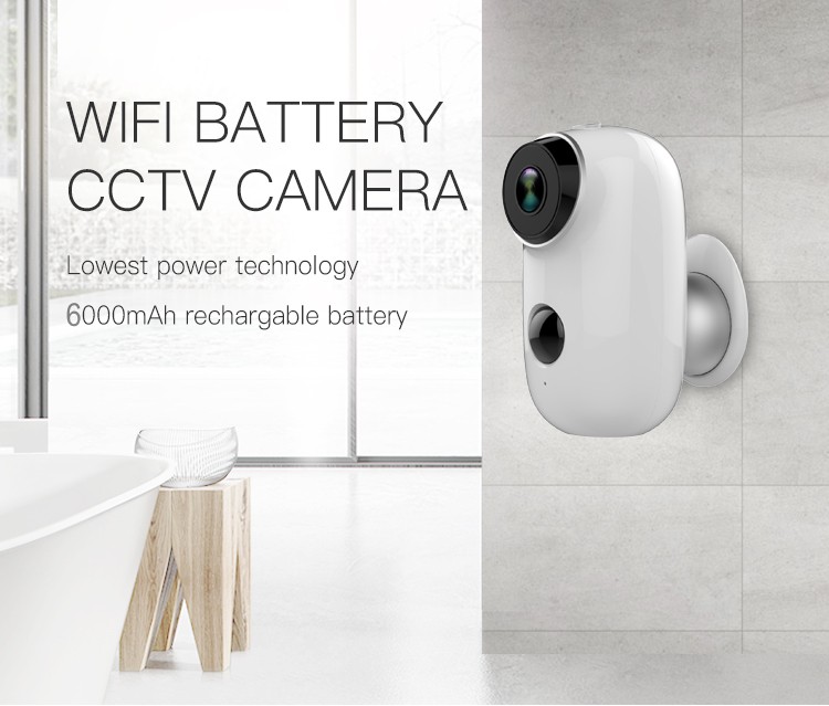 HD 720P WiFi IP Camera Rechargeable Battery Camera PIR Motion Sensor IR Night Vision Camera white