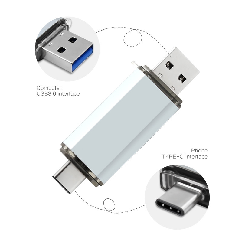 High Speed Type C USB3.1 U Disk L17- Aluminum Alloy Shell USB Flash Drive Silver_32G