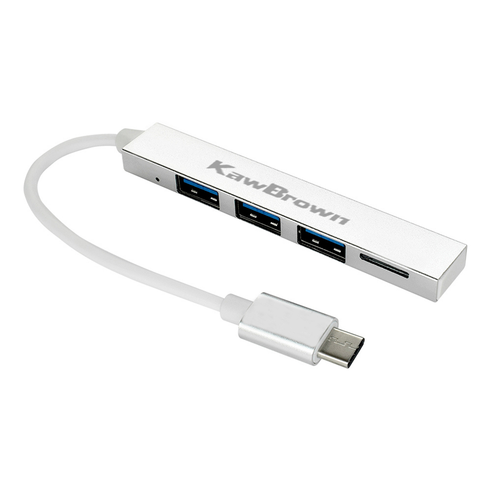 KawBrown 4 in 1 Type-C Hub To USB 3.0 Magnesium Alloy Hub with TF Reader for Laptop Silver