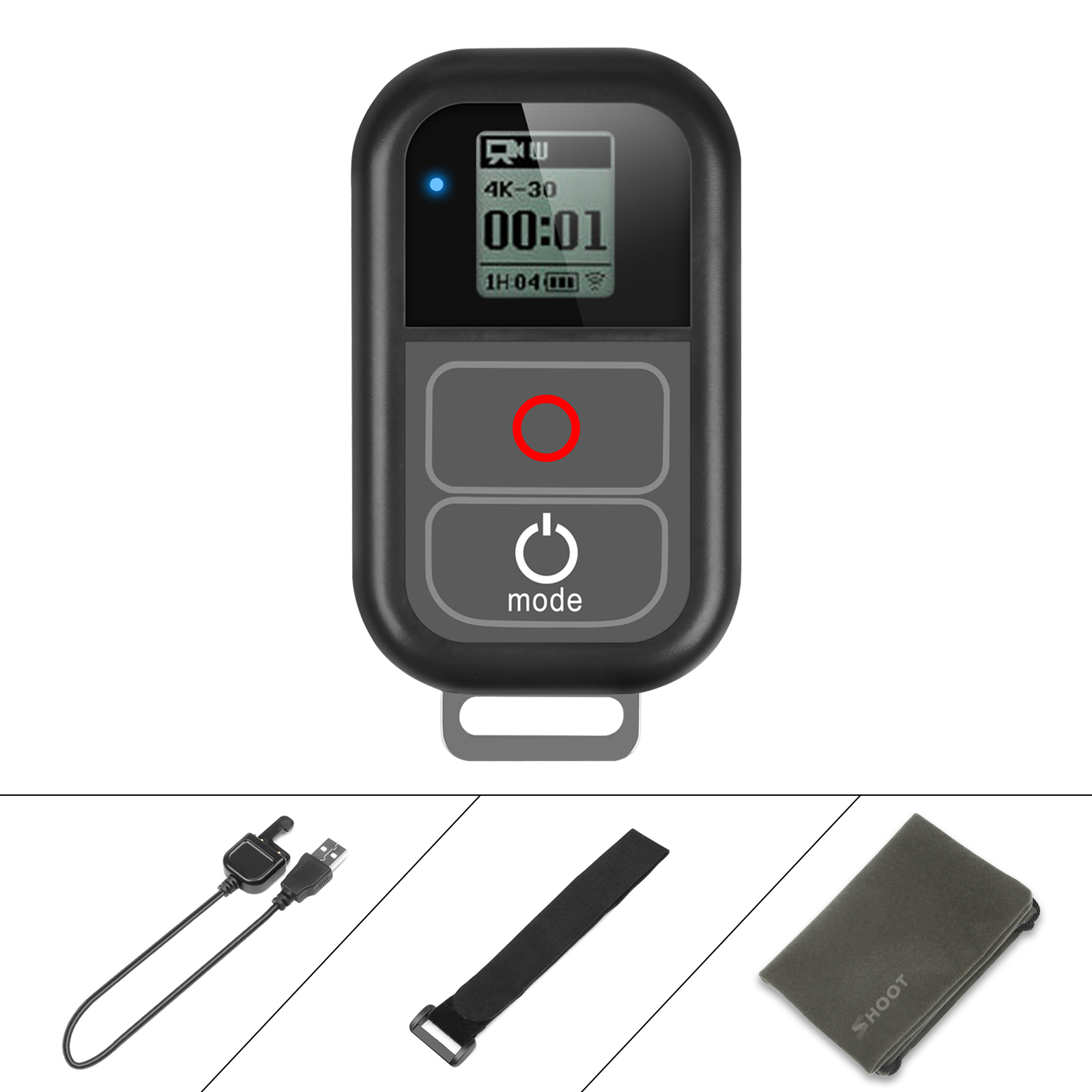 SHOOT For GoPro WiFi Remote Control with Charger Cable Wrist Strap Waterproof Remoter for Go Pro Hero 7 6 5 4 Session Accessory black
