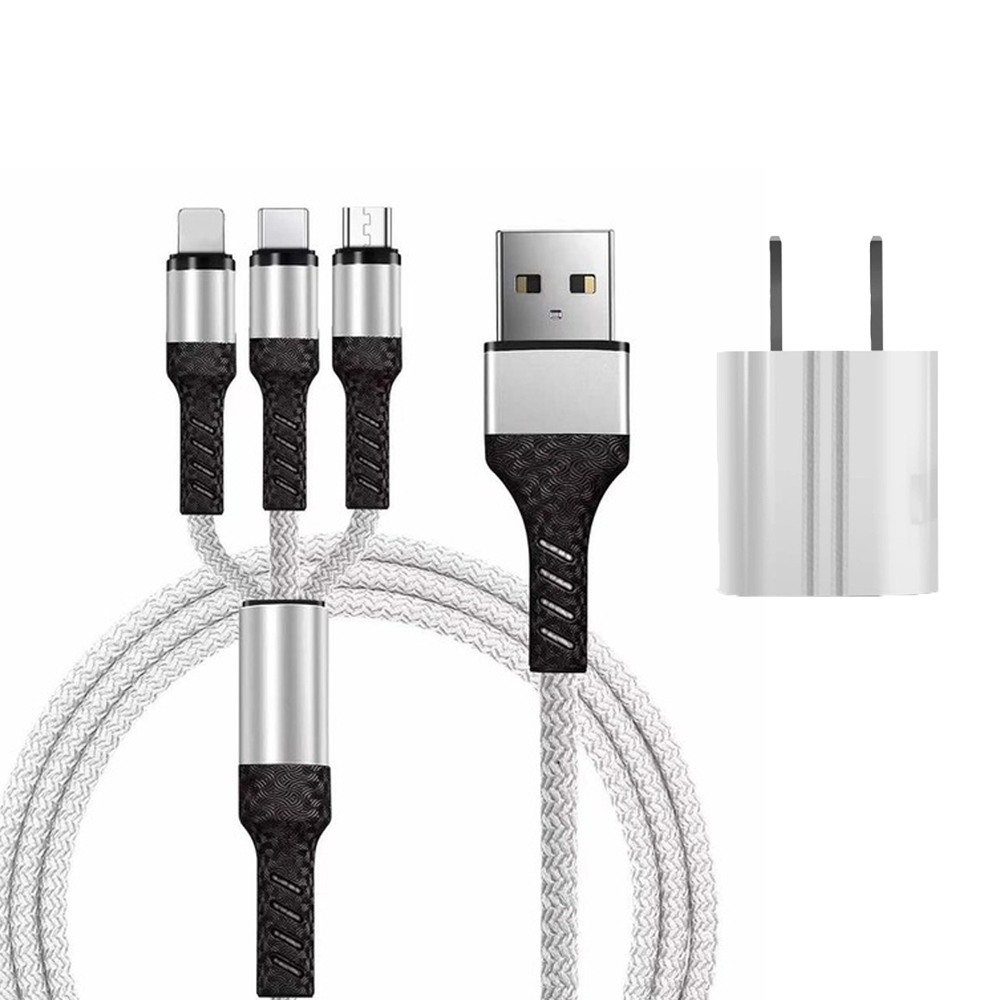 SIMU 3-in-1 Weave 1.2M Mobile Phone Peripheral Safe Charging Data Cable Set white