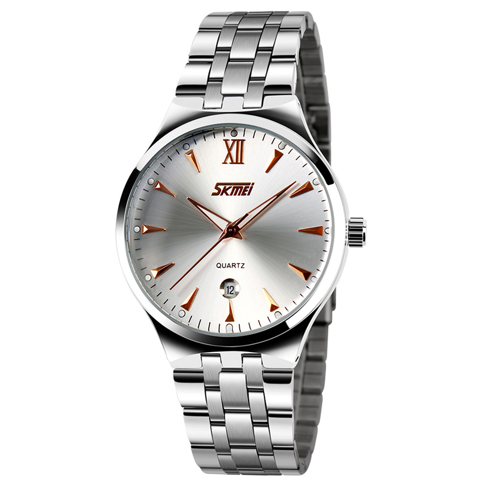 SKMEI Men Sports Quartz Watch Date Display Luminous Waterproof Stainless Steel Wristwatch Gold
