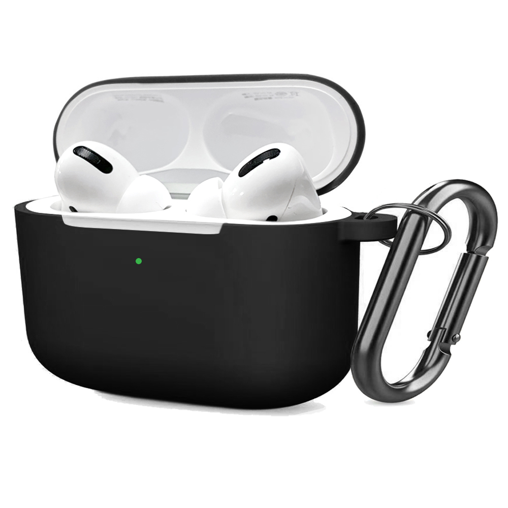 Soft Silicone Case for Airpods Pro Shockproof Hook Protective Bags With Keychain Earbuds Cover black