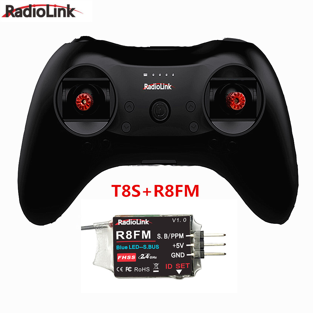 T8S 8CH RC Radiolink Remote Controller Transmitter 2.4G with R8EF or R8FM Receiver Handle Stick for FPV Quad Drone Airplane Car T8S+R8FM left-hand throttle