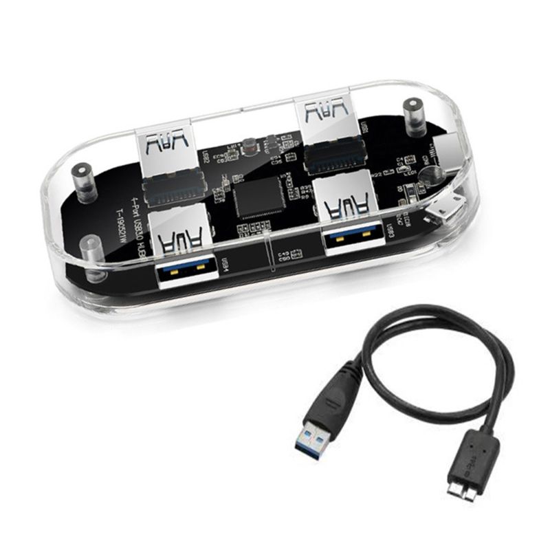 Transparent USB HUB 4-Port Splitter USB3.0 Adapter Supports External Micro USB Power for Desktop Laptop Transparent