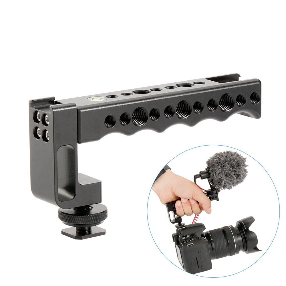 Stabilizing handle which can be used to fix both microphone and the monitor.Made of premium aluminium alloy, which is comfortable to grip and strong.Suitable for any SLR camera, such as for Panasonic GH series, for Sony A7 series, etc.