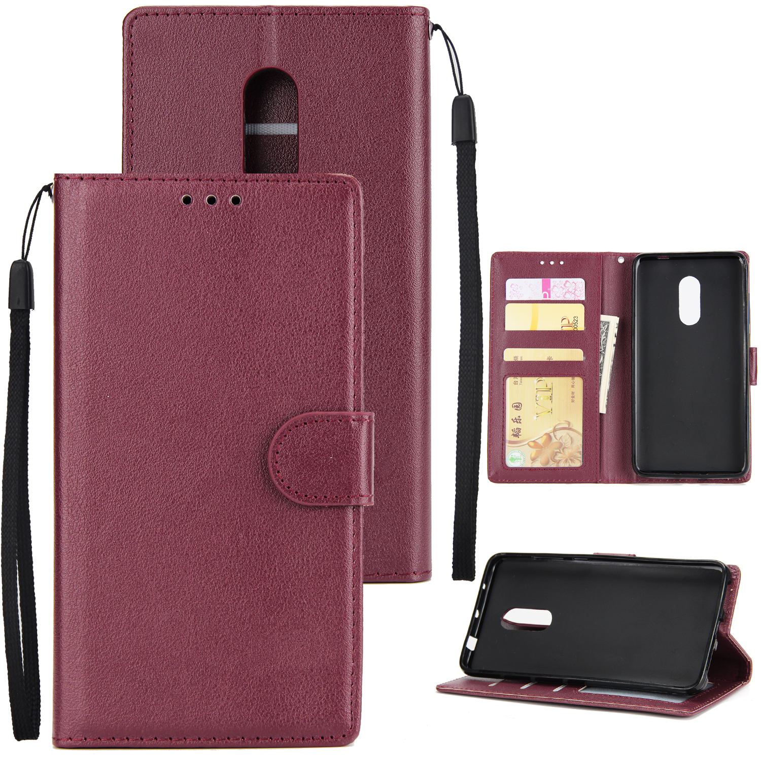Ultra Slim PU Full Protective Cover Non-slip Shockproof Cell Phone Case with Card Slot for Xiaomi Redmi note 4 Red wine
