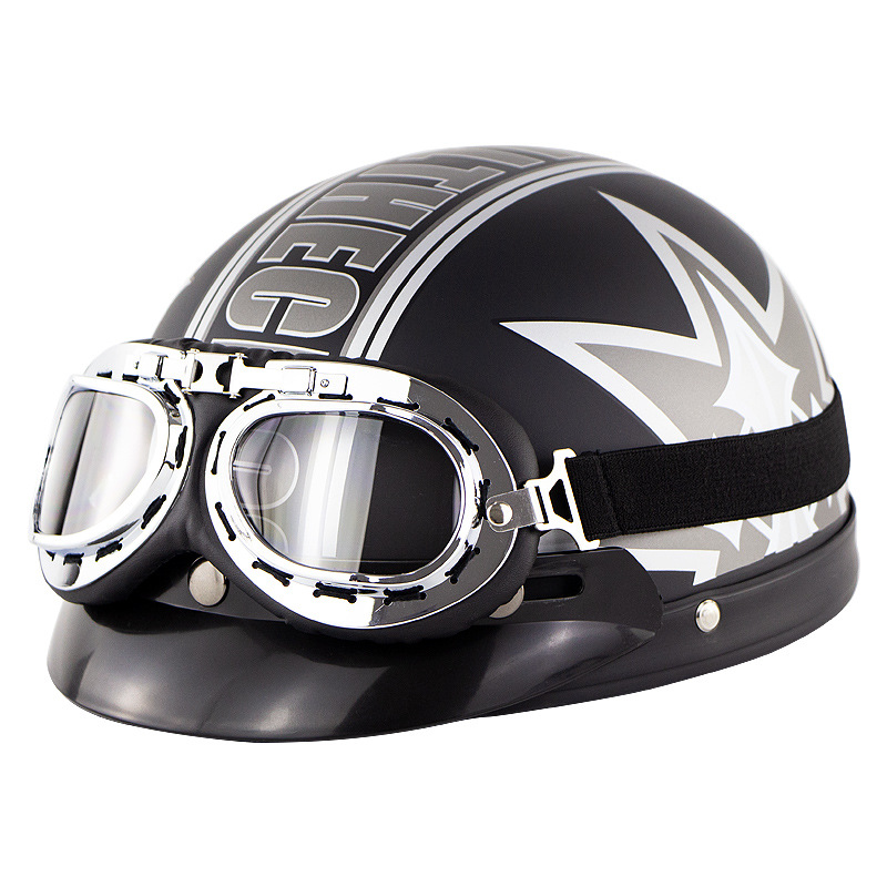 Unisex Cute Motorcycle Helmet Bike Riding Protective Strong Safety Half-face Helmet with Goggles Matte black maple leaf_One size