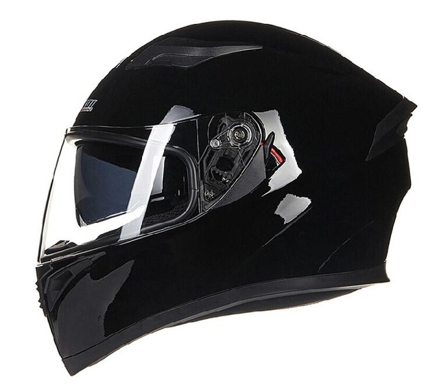 Unisex Full Face Cool Motorcycle Helmet with Dual Lens Racing Head Protector Bright black_L