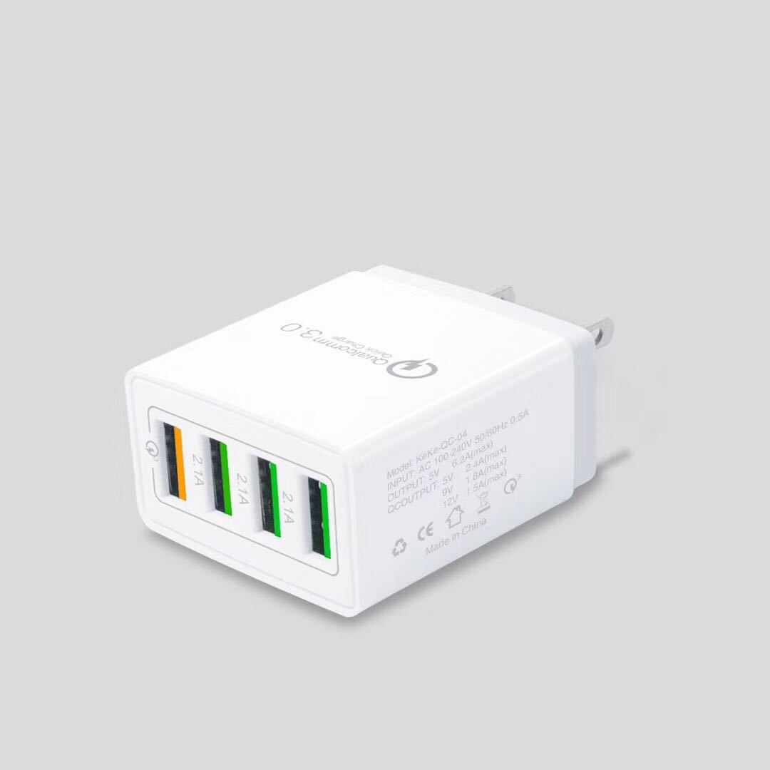 Universal 4USB Travel Mobile Phone Charger Adapter for iPhone Samsung 5V 5.1A Smart Charging Head Smart Phone USB Fast charger US plug White