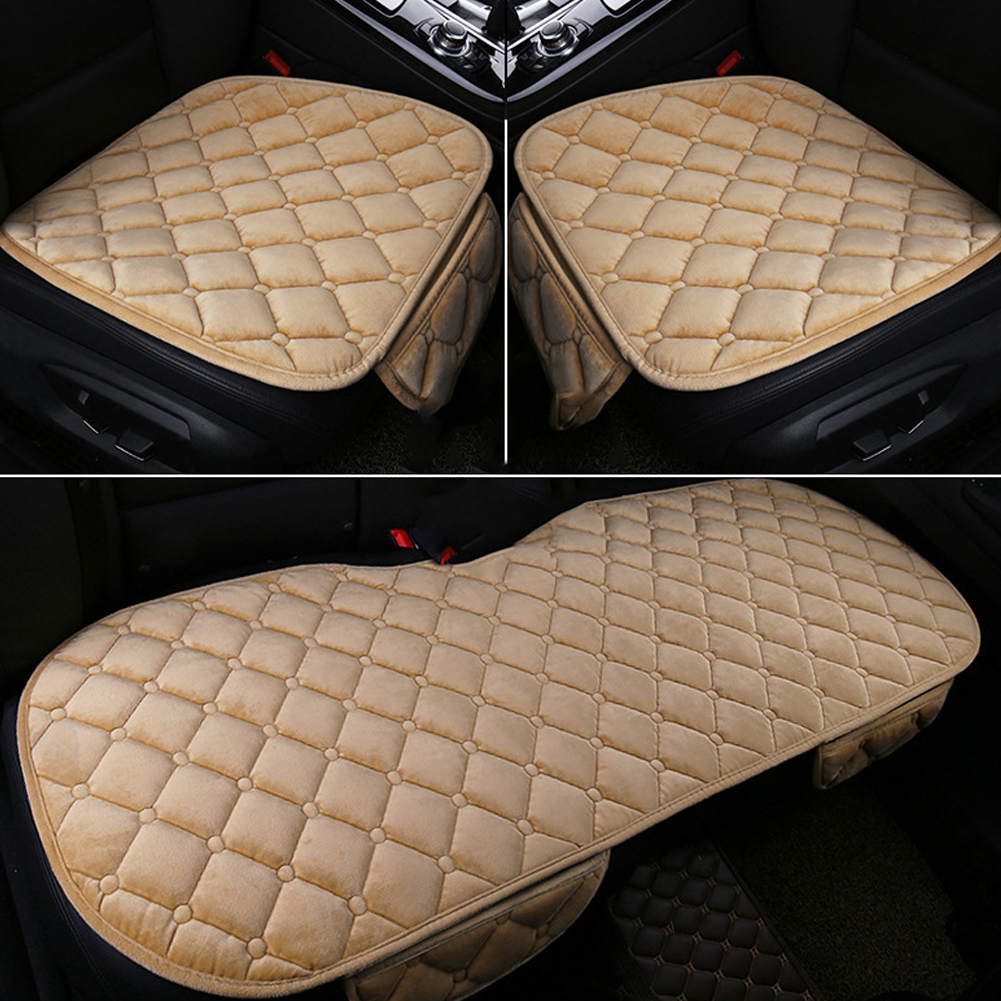 Universal Car Seat Cushion Velvet Silk Seat Cover Set Warm Beige