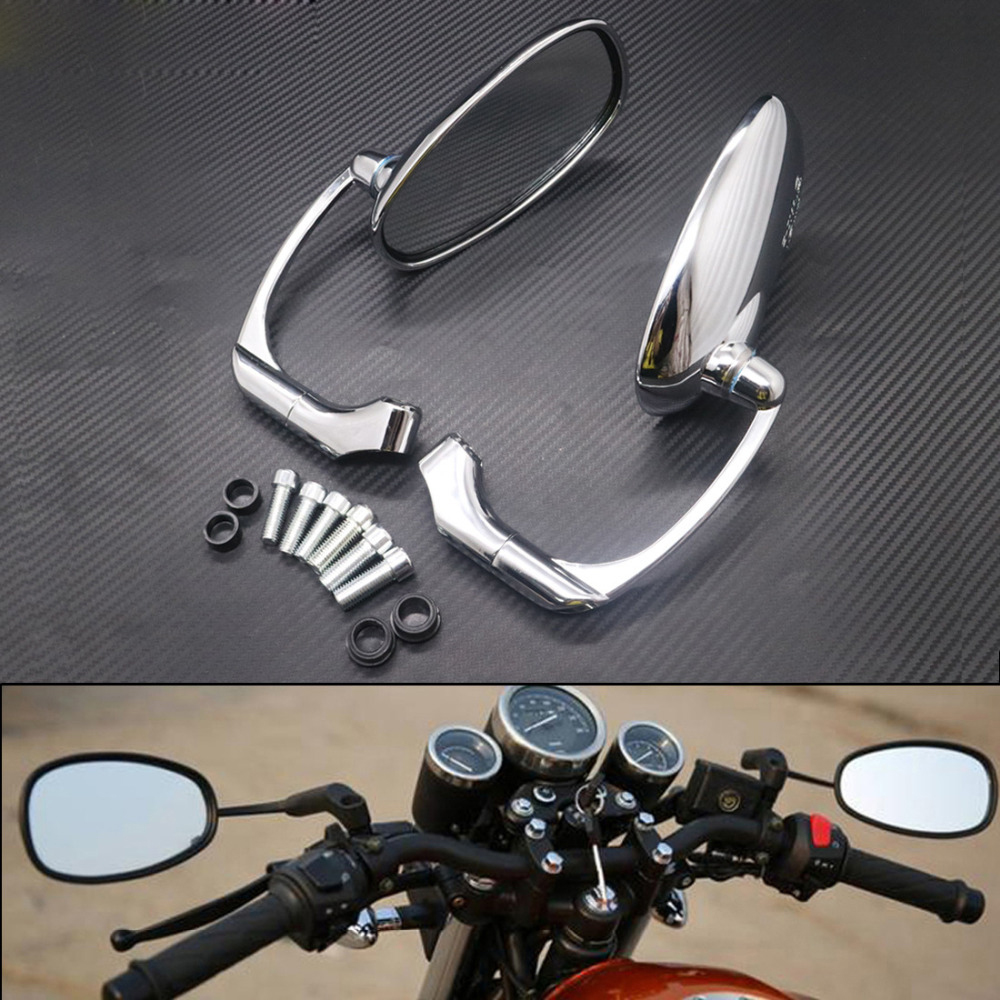 Universal Motorcycle CNC Chrome Black Ellipse Rearview Side Mirrors Handle Bar End Mirrors 8mm 10mm For Street Bike Silver