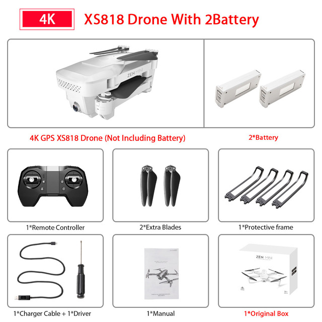 XS818 Drone FPV HD 4K GPS Quadrocopter With WIFI Camera Dron Foldable Drone Selfie RC Quadcopter Drones Helicopter Toy 2 battery